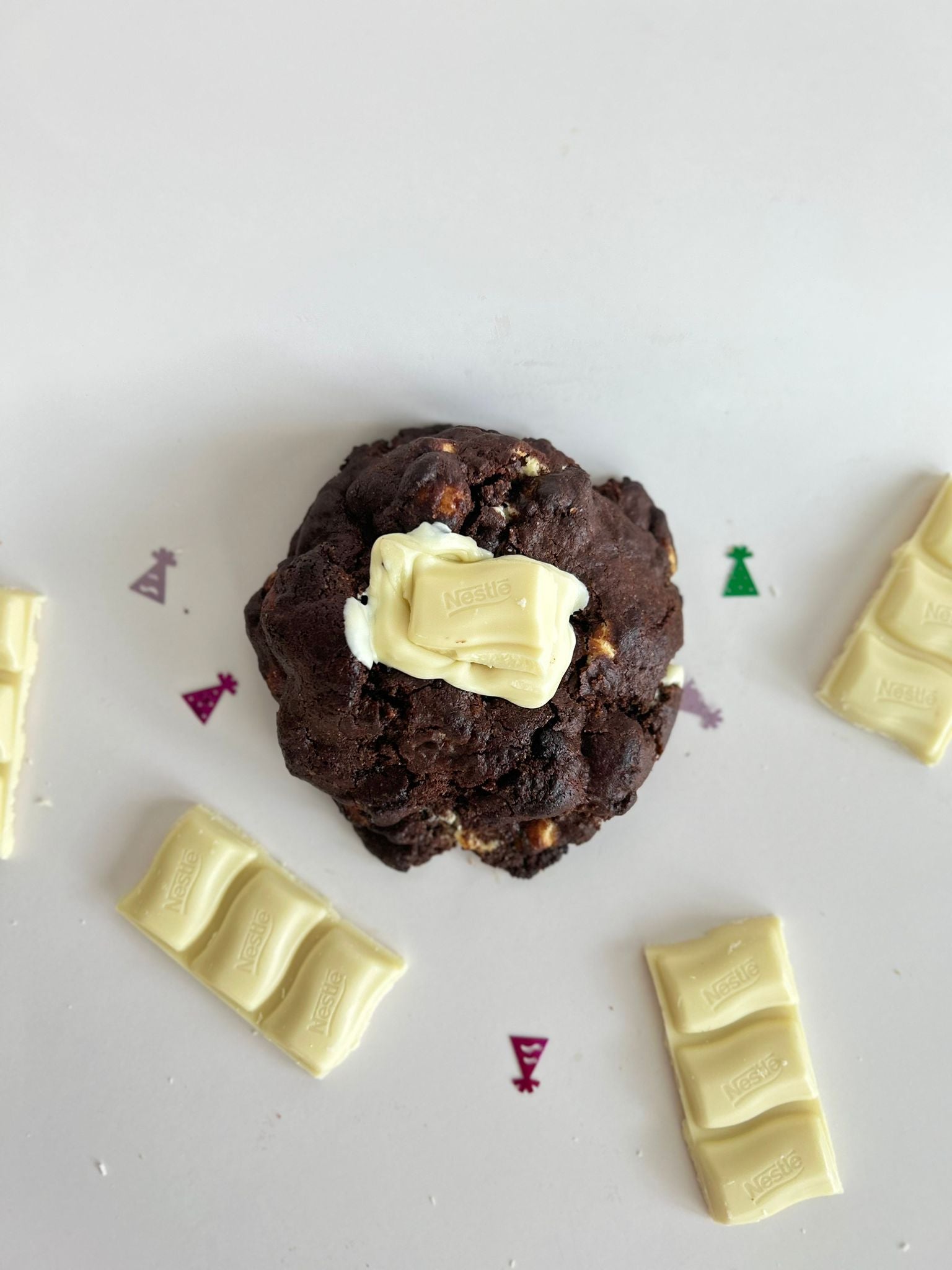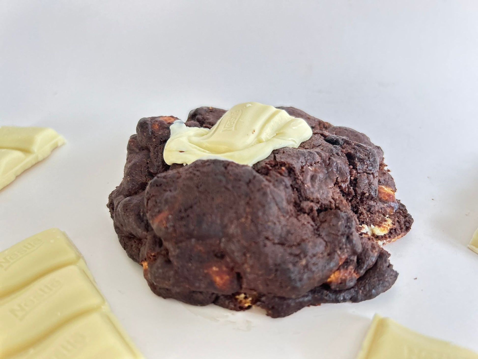 Butter / White Sugar / Brown Sugar / Egg / Wheat Flour / Cacao Callebaut / Cornstarch / Baking Soda / White Chocolate Chips Callebaut / Milkybar Chocolate